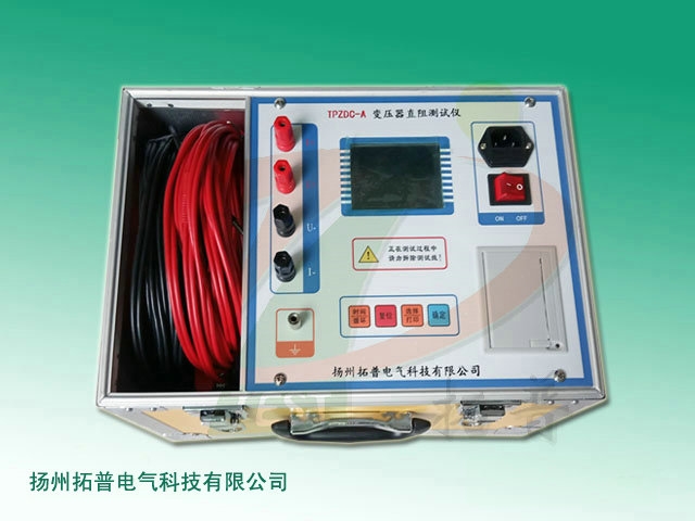 扬州拓普电气科技有限公司提供的感性负载直流电阻测试仪_TP_ZGY-III_技术参数 本公司推出的感性负载直流电阻测试仪采用全新电源技术,具有体积小、重量轻、输出电流大并且可根据负载大小自动调整等特点。整机由双芯片采样,精度更高,自动完成自检、数据处理、显示、打印等功能,具有自动放电和放电指示功能。仪器测试精度高,操作简便,可实现直流电阻的快速测量。 该直流电阻测试仪采用32位ARM内核作为处理的核心,对整机进行控制,自动完成自校、稳流判断、数据处理、阻值显示等功能,可测量各种类型变压器和互感器的直流电阻。 功能特点 1、仪器采用65K真彩色液晶屏显示,中文菜单提示,操作方便。 2、仪器采用32位ARM内核作为处理核心,稳定性好。 3、设备具有完善的保护电路,可靠性强。 4、仪器输出电流大,测量范围宽,体积小,重量轻。 5、设备具有大容量存储功能,数据打印功能。 技术指标 1、输出电流:自动、10A、5A、1A、0.1A、10mA、1mA 2、测量范围及准确度: 自动档:超出以下量程请用自动测试功能 手动档:10A (1mΩ~100mΩ ±0.2%±5个字) 5A (100mΩ~1Ω ±0.2%±5个字) 1A (500mΩ~10Ω ±0.2%±5个字) 0.1A (10Ω~200Ω ±0.2%±5个字) 10mA (200Ω~1000Ω ±0.5%±5个字) 1mA (2000Ω~20000Ω ±0.5%±5个字) 3、分 辨 率:0.1μΩ 4、工作温度:-10~40℃ 5、环境湿度:≤80%RH 6、工作电源:AC220V、50Hz